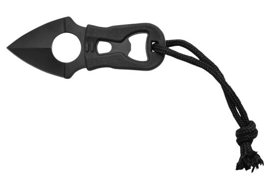 The Heater II neck knife from Camillus offers rugged construction in a compact 4.25" profile. Its 1.75" 420 stainless steel blade features a hollow grind and is bonded with Carbonitride Titanium for superior edge performance and corrosion resistance. A black glass-filled nylon handle includes a control-enhancing finger hole. The knife also features a bottle opener, molded sheath, and beaded chain, making it suitable for neck carry, backup use, or minimalist everyday tasks.